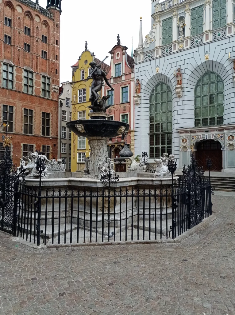 La statue de Neptune à Gdansk est un symbole emblématique de la ville. Située sur la Place du Long Marché, elle représente le dieu romain des mers et des océans, ce qui reflète l’histoire maritime et le lien étroit de Gdansk avec la mer Baltique.